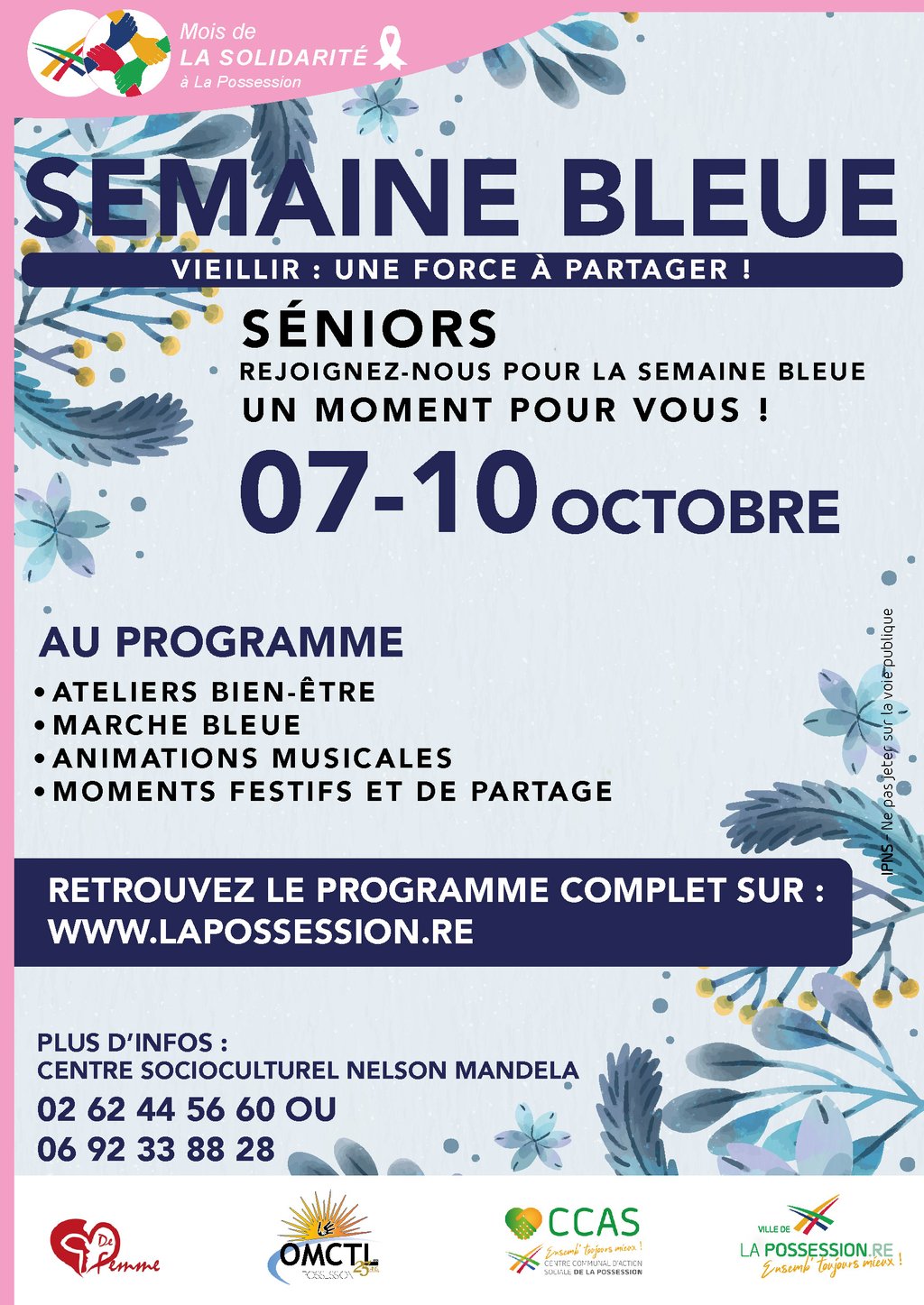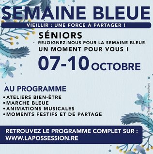 Comme chaque année, la ville de La Possession met en place un programme d'activités à destination des aînés, à l'occasion de la Semaine Bleue :