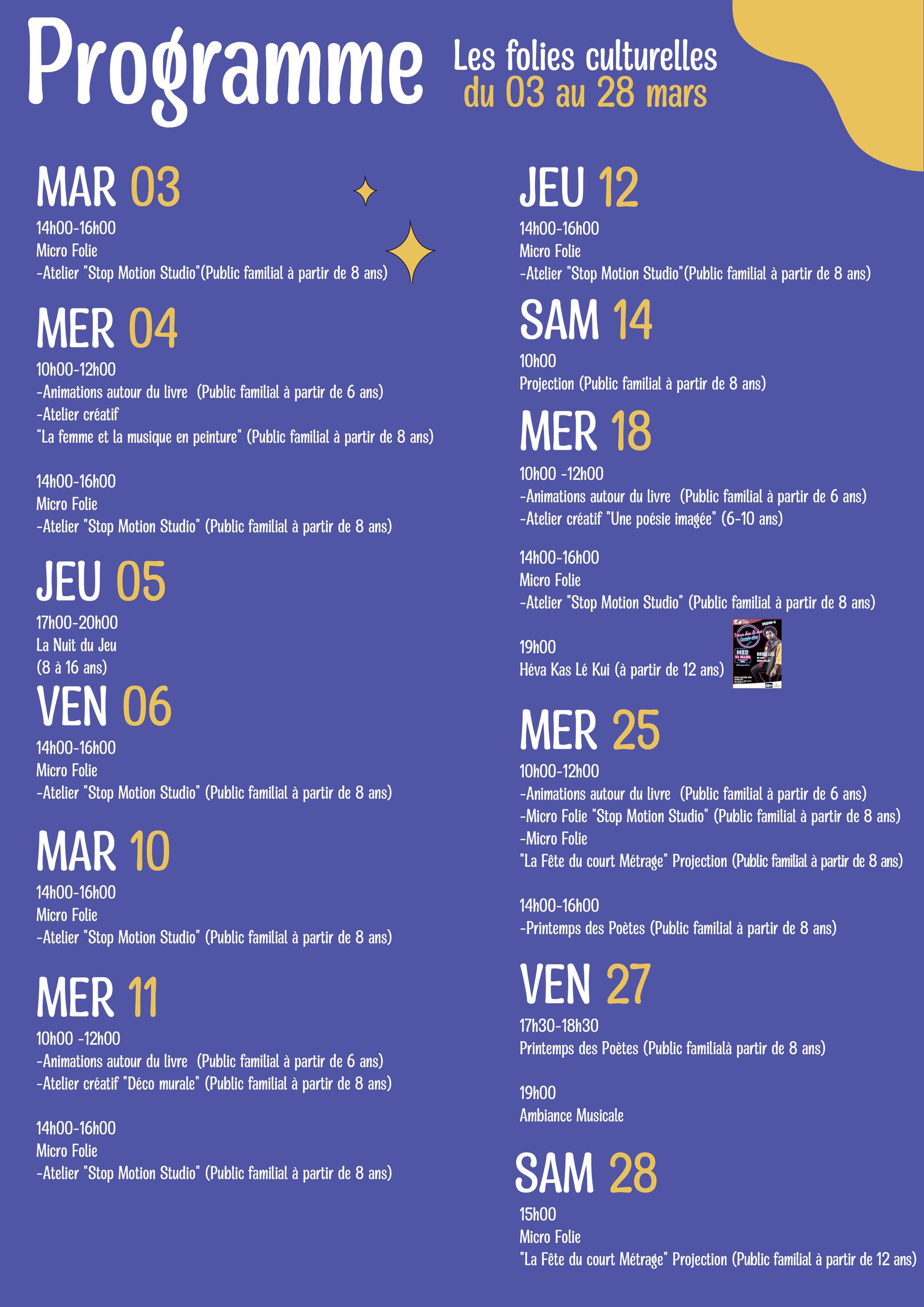 Folies culturelles du mois de mars