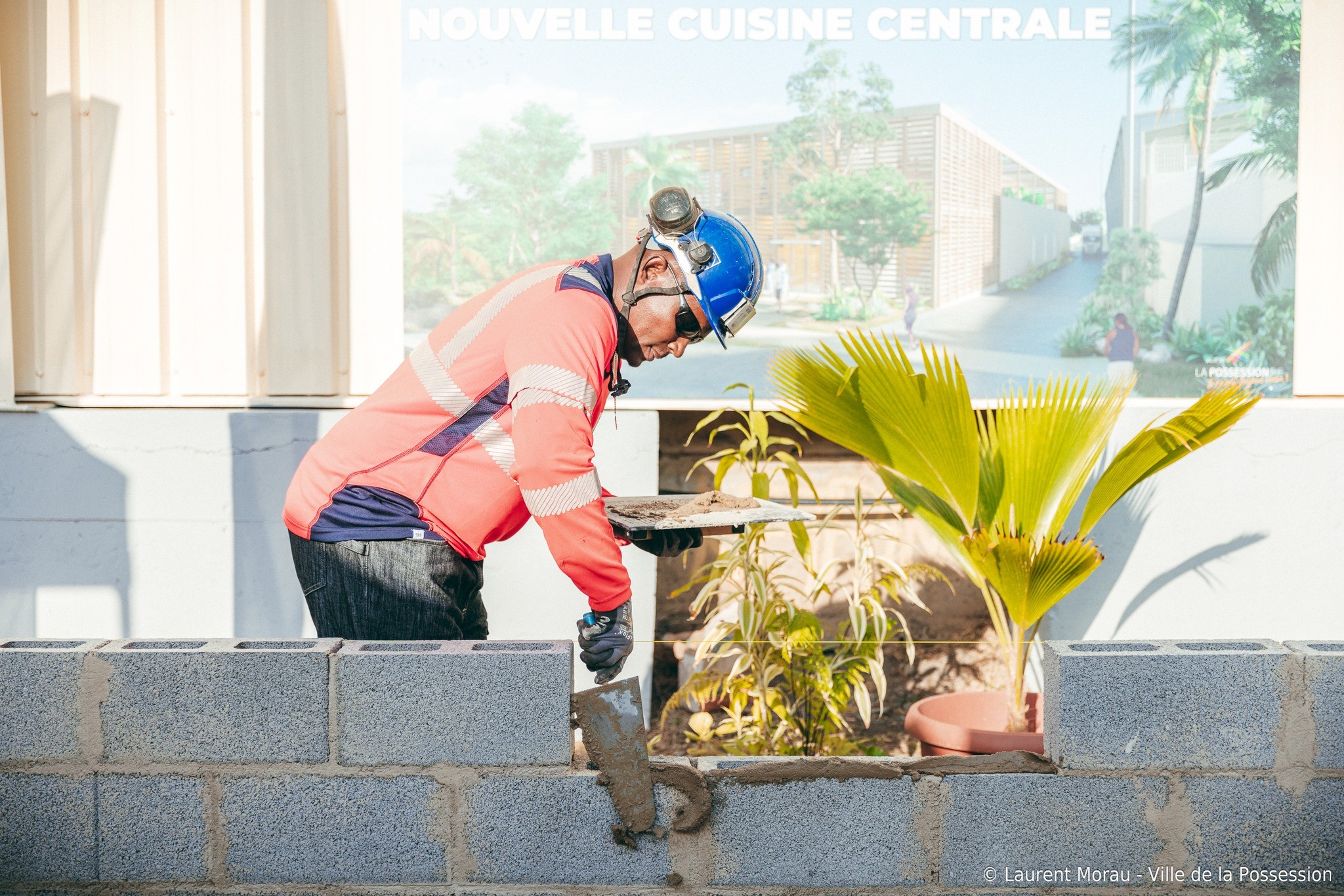 Pose de la 1ère pierre de la cuisine centrale